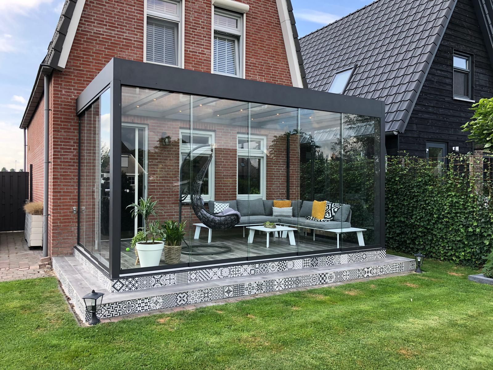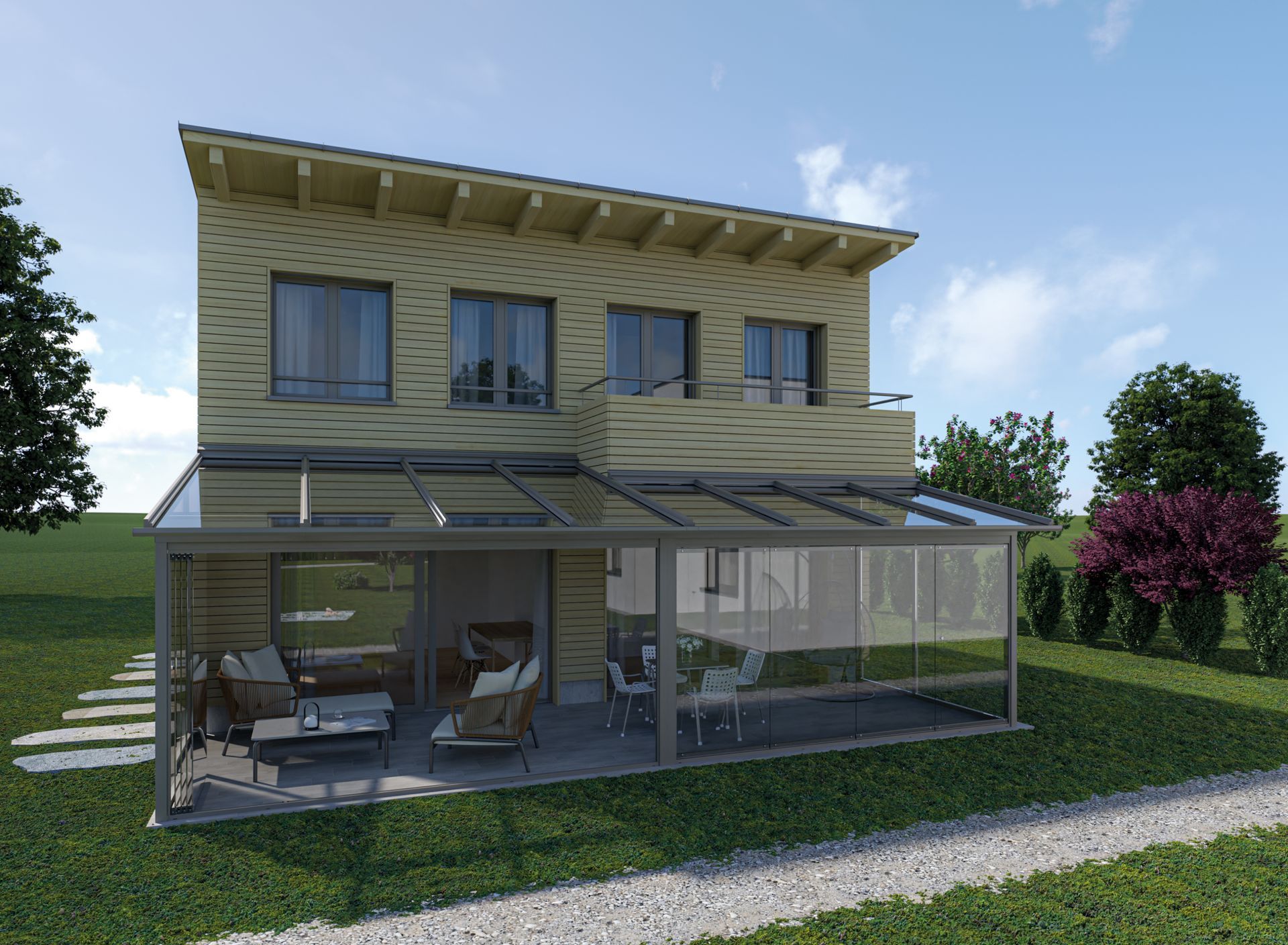 A versatile veranda modular in design with multiple add on options that can simply be made into a glass room by adding various elements